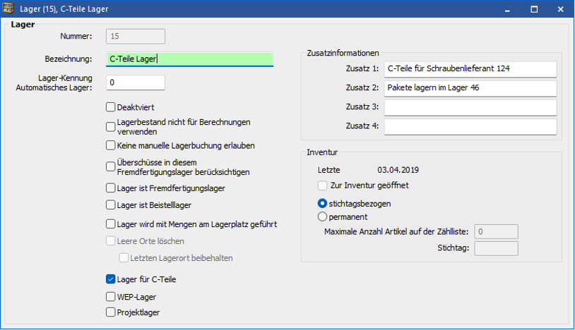 Verwaltung von Seriennummern oder Chargen. Stichtagbezogene oder permanente Inventur.